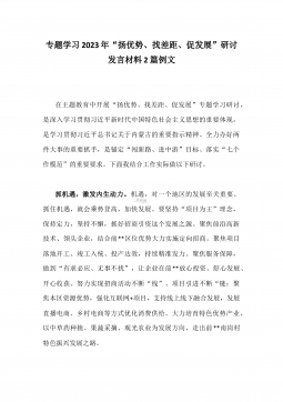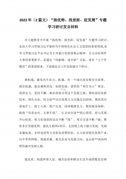 2023年(2篇文)“扬优势、找差距、促发展”专题学习研讨发言材料