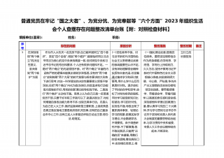 普通党员在牢记“国之大者”、为党分忧、为党奉献等“六个方面”2023年组织生活会个人查摆存在问题整改清单台账【附:对照检查材料】