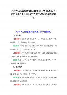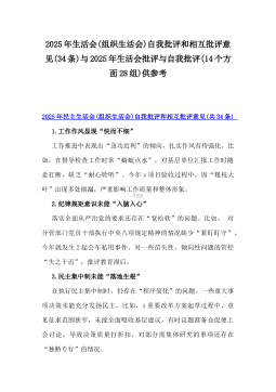2025年生活会(组织生活会)自我批评和相互批评意见(34条)与2025年生活会批评与自我批评(14个方面28组)供参考