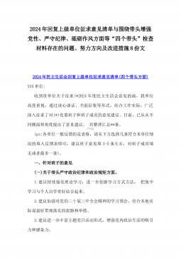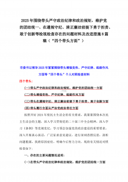 2025年校领导生活会对照“四个带头”方面对照个人检视发言材料【含:围绕本领城违纪行为典型案例分析方面】与国有企业领导班子“四个带头”方面对照检查发言材料(上年度整改情况)2篇校领导2025年生活会对照“四个带头”方面对照个人检视发言材料【含:围绕本领城违纪行为典型案例分析方面】按照市委关于开好2024年度党员领导干部民主生活会的有关要求,本人深入学习领会党的二十届三中全会精神和习近平总书记系列重要讲话精神,认真研读党章、《中国共产党纪律处分条例》等党内法规,聚焦本次民主生活会主题,结合分管工作实际,严格对照“四个带头”要求认真对照检查,深入查找自身存在的问题,深刻剖析原因,明确努力方向,以便...