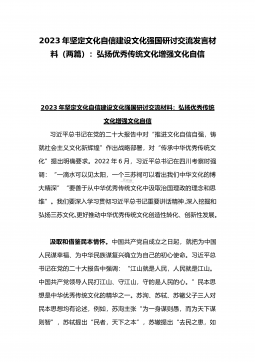 2023年坚定文化自信建设文化强国研讨交流发言材料(两篇):弘扬优秀传统文化增强文化自信
