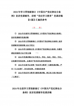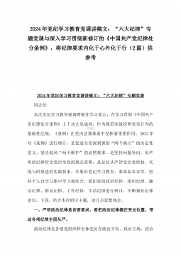 2024年党纪学习教育党课讲稿文:“六大纪律”专题党课与深入学习贯彻新修订的《中国共产党纪律处分条例》,将纪律要求内化于心外化于行(2篇)供参考