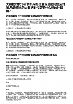 大数据时代下计算机网络信息安全的问题及对策,马云提出的大数据时代需要什么样的计算机?...