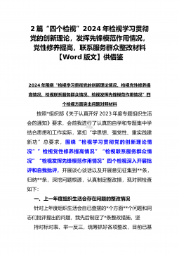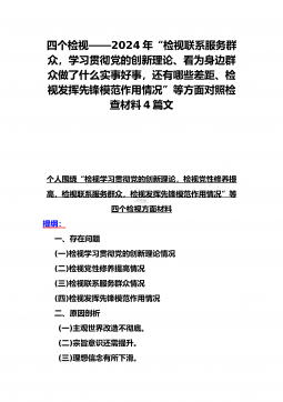 四个检视——2024年“检视联系服务群众,学习贯彻党的创新理论、看为身边群众做了什么实事好事,还有哪些差距、检视发挥先锋模范作用情况”等方面对照检查材料4篇文