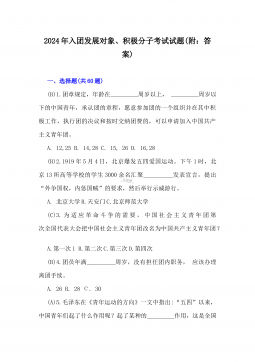 2024年入团发展对象、积极分子考试试题(附:答案)