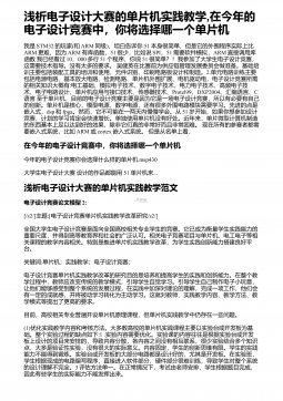 浅析电子设计大赛的单片机实践教学,在今年的电子设计竞赛中,你将选择哪一个单片机我是STM32的玩家(和ARM同级),坦白告诉你:51本身很简单,但是它的外围程序实际上比ARM更难,因为ARM有库函数,51很少,比如说SPI,51需要软件模拟,ARM直接调用库函数我已经看过10,000多行51个程序,你说51很简单?!我参加了大学生电子设计竞赛,这需要技术指导。没有太多的要求。吴健英在比赛前为供应链管理发展委员会做准备。基础培训主要包括装配工具的培训和使用、元件识别、印刷电路板设计和制造。2.单元电路训练主要包括电源电路、基本放大电路、检测电路、单片机外围扩展、电机驱动电,电子设计竞赛所需的相关...