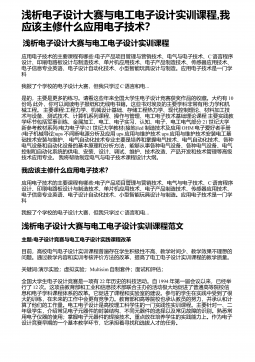 浅析电子设计大赛与电工电子设计实训课程,我应该主修什么应用电子技术?