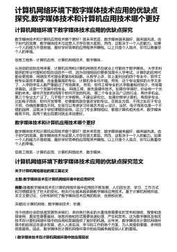 计算机网络环境下数字媒体技术应用的优缺点探究,数字媒体技术和计算机应用技术哪个更好