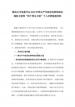 二篇文:2024年重点围绕“践行宗旨服务人民、求真务实狠抓落实、以身作则廉洁自律、履行从严治党政治责任、维护党中央权威和集中统一领导”等六个方面对照检查材料【供参考】