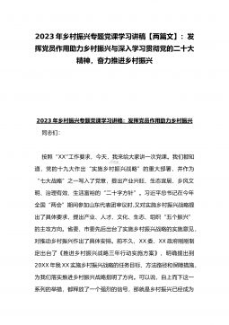 2023年乡村振兴专题党课学习讲稿【两篇文】:发挥党员作用助力乡村振兴与深入学习贯彻党的二十大精神,奋力推进乡村振兴