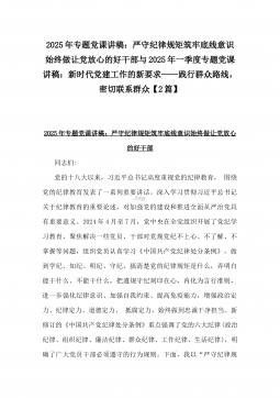2025年专题党课讲稿:严守纪律规矩筑牢底线意识始终做让党放心的好干部与2025年一季度专题党课讲稿:新时代党建工作的新要求——践行群众路线,密切联系群众【2篇】