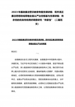 2023年廉政廉洁警示教育专题党课讲稿:筑牢清正廉洁思想防线厚植全面从严治党根基与党课讲稿:传承党的优良传统用好调查研究“传家宝”(二篇范文)