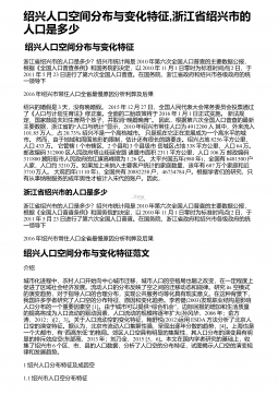 绍兴人口空间分布与变化特征,浙江省绍兴市的人口是多少绍兴人口空间分布与变化特征浙江省绍兴市的人口是多少?绍兴市统计局是2010年第六次全国人口普查的主要数据公报,根据《全国人口普查条例》和国务院的决定,以2010年11月1日零时为标准时间点[2日,于2011年5月23日进行了第六次全国人口普查。在国务院、浙江省政府和绍兴市各级政府的统一领导下2016年绍兴市常住人口全省最慢原因分析利弊及后果绍兴的婚假是3天,没有晚婚假。2015年12月27日,全国人民代表大会常务委员会投票通过了《人口与计划生育法》修正案。全面的二胎政策将于2016年1月1日正式实施。新法规“”定,国家鼓励夫妇生育两个孩子,并...