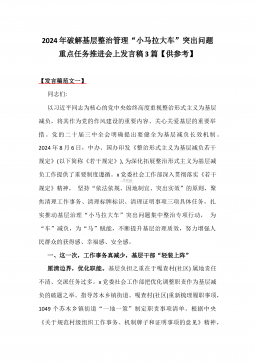 2024年破解基层整治管理“小马拉大车”突出问题重点任务推进会上发言稿3篇【供参考】