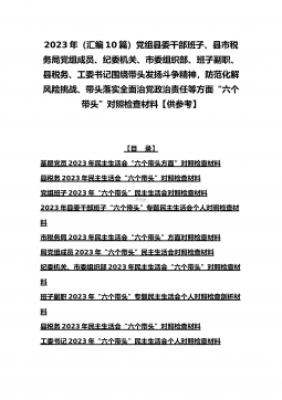 2023年(汇编10篇)党组县委干部班子、县市税务局党组成员、纪委机关、市委组织部、班子副职、县税务、工委书记围绕带头发扬斗争精神,防范化解风险挑战、带头落实全面治党政治责任等方面“六个带头”对照检查材料【供参考】