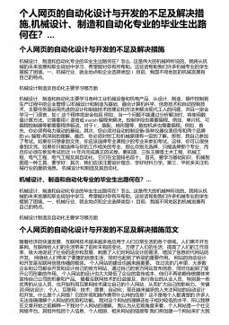 个人网页的自动化设计与开发的不足及解决措施,机械设计、制造和自动化专业的毕业生出路何在?...