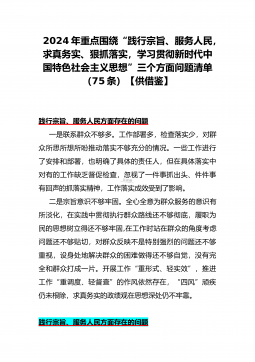 2024年重点围绕“践行宗旨、服务人民,求真务实、狠抓落实,学习贯彻新时代中国特色社会主义思想”三个方面问题清单(75条)【供借鉴】