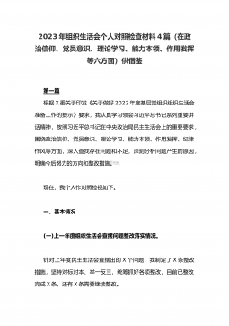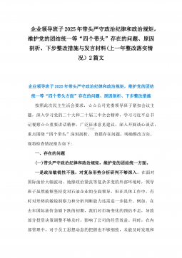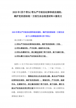 2025年市妇联班子专题生活会“四个带头”对照检查材料【含反面典型案例】与市妇联党支部书记“四个带头”对照检查发言材料【含意识形态工作责任制落实方面】2篇文2025年市妇联班子专题生活会“四个带头”对照检查材料【含反面典型案例剖析方面】根据《中共x市纪委机关中共x市委组织部关于开好2024年度县以上党和国家机关党员领导干部民主生活会的通知》要求,市妇联党组紧紧围绕2024年度民主生活会主题,集中组织学习,深入开展谈心谈话,认真查摆存在问题,深刻剖析根源原因,有针对性地提出努力方向及整改措施,形成如下对照检查材料。一、查摆的主要问题(一)带头严守政治纪律和政治规矩,维护党的团结统一方面:一是理论...
