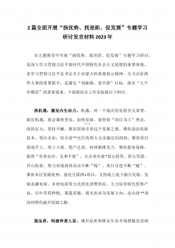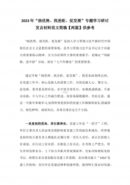 2023年“扬优势、找差距、促发展”专题学习研讨发言材料范文简稿【两篇】供参考