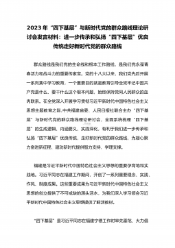 2023年“四下基层”与新时代党的群众路线理论研讨会发言材料:进一步传承和弘扬“四下基层”优良传统走好新时代党的群众路线