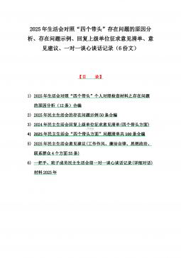 组织委员、医院院长、学校副校长、市总工会党组书记、乡党委副书记2025年民主生活会“四个带头”个人对照检查材料5篇文(附:案例查找问题、典型案例解析、上年度整改+个人情况)【目录】组织委员2025年民主生活会个人对照材料[四个带头+案例查找问题]2025年医院院长关于在带头履行全面从严治党政治责任方面等“四个带头”民主生活会个人对照检查材料2025年学校副校长关于民主生活会“四个带头”方面对照个人检视发言材料(附:典型案例解析)2025年市总工会党组书记民主生活会“四个带头”方面对照个人检查发言材料(附:上年度整改+个人情况)乡党委副书记2025年带头在遵规守纪、清正廉洁前提下勇于担...