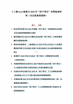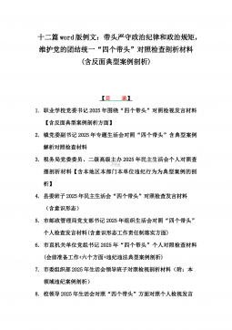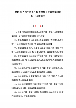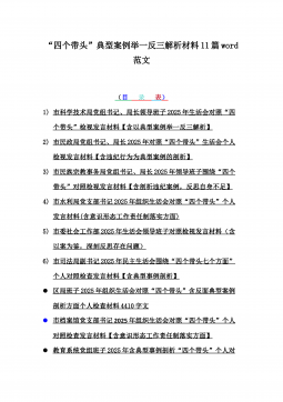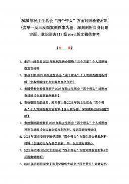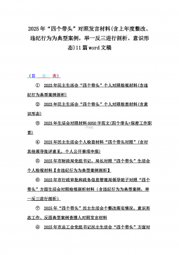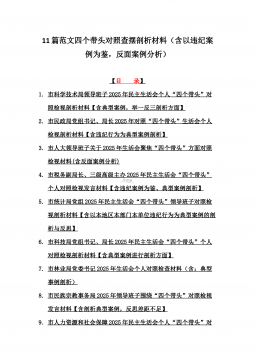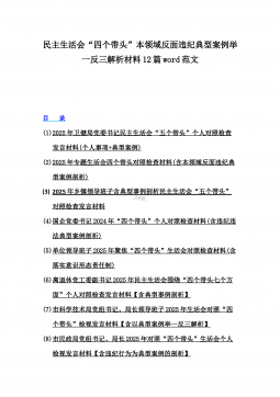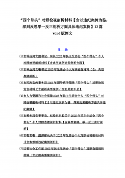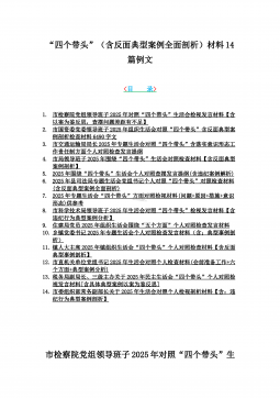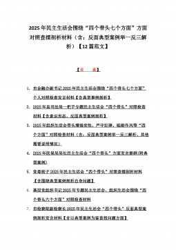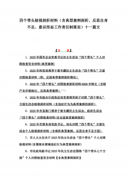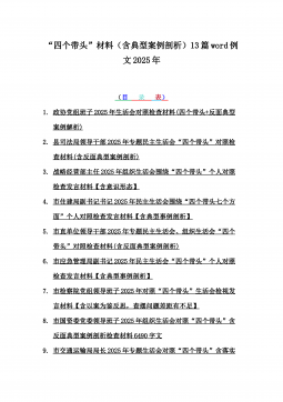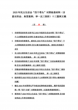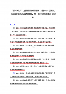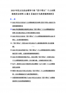 2025年民主生活会“四个带头”方面对照检查材料(含举一反三反面案例以案为鉴,深刻剖析自身问题方面、意识形态)13篇word版文稿供参考【目录】1.生产一线党员2025年组织生活会围绕“五个方面”个人对照检查发言材料2.领导干部2025年民主生活会“四个带头”个人对照查摆剖析材料(含本领城违纪行为典型案例剖析)3.市国资委党委领导班子2025年民主生活会“四个带头”对照检查材料【含典型案例解析】4.市检察院党组成员、政治部主任2025年民主生活会“四个带头”个人对照检视发言材料【含以案为鉴,深刻剖析自身问题方面】5.市检察院副检察长2025年民主生活会“四个带头”个人对照检视发言材料【含以案为...