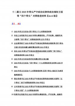 十三篇例文:带头严守政治纪律和政治规矩方面等“四个带头”专题生活会对照检查材料【word版】2025年