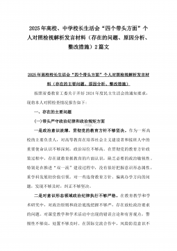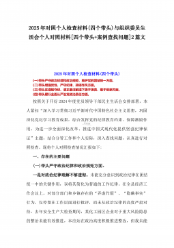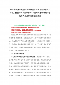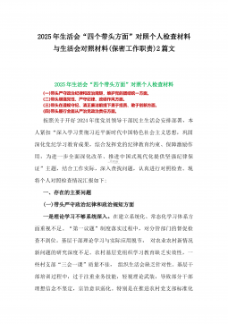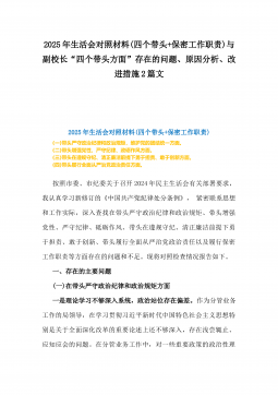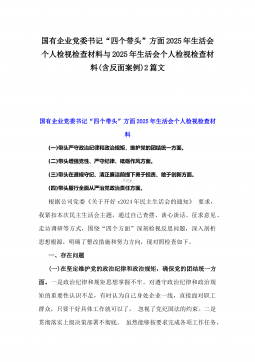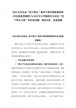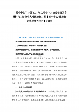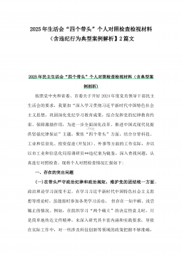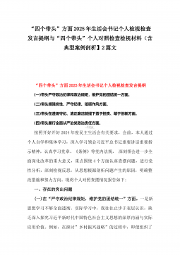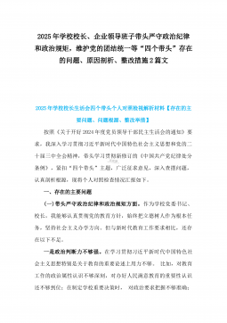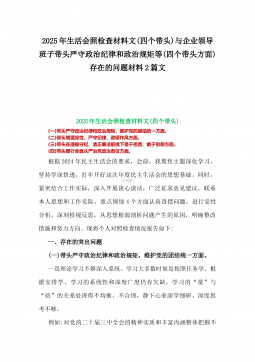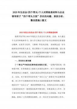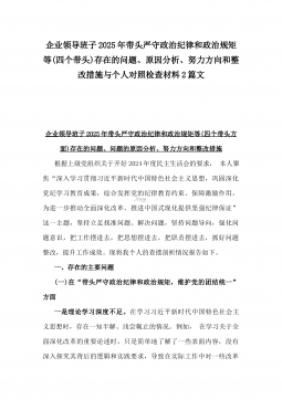 2025年生活会“四个带头”个人对照检查发言材料(附以案为鉴)与2025年企业领导班子带头严守政治纪律和政治规矩等“五个方面”存在的问题、原因分析、整改措施
