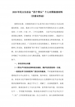 2024年度党员领导干部民主生活会征求意见反馈内容与2024年度民主生活会领导班子和个人征求意见建议(52条)目录2024年度党员领导干部民主生活会征求意见反馈内容2024年度民主生活会领导班子和个人征求意见建议(52条)2024年度党员领导干部民主生活会征求意见反馈内容带头严守政治纪律和政治规矩,维护党的团结统一。健全落实以学铸魂、以学增智、以学正风、以学促干长效机制,深刻领悟“两个确立”的决定性意义,坚决做到“两个维护”,自觉防止和反对个人主义、分散主义、自由主义、本位主义,自觉在思想上政治上行动上同以习近平同志为核心的党中央保持高度一致。肯定意见:一、政治立场坚定,纪律规矩严明班子及成员...
