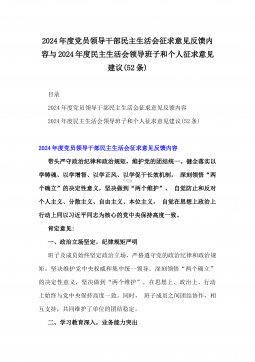 2024年度党员领导干部民主生活会征求意见反馈内容与2024年度民主生活会领导班子和个人征求意见建议(52条)
