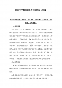 2025年学校党建工作计划【总体思路、工作目标、工作内容、具体措施、保障措施】范文稿