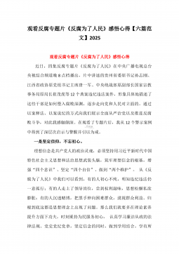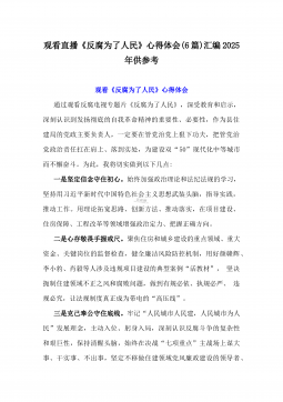 2025年观看直播反腐电视专题片《反腐为了人民》感悟心得6篇范文