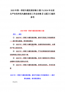 2025年度党风廉政建设工作计划稿[7篇]与“四个方面”2025年带头履行全面从严治党政治责任等检查发言材料、实施方案【8份】合编供借鉴2025年度党风廉政建设工作计划2025年,中心党组为深入贯彻落实习近平新时代中国特色社会主义思想和党的二十大、二十届三中全会精神,强化全面从严治党监督责任,深入推进党风廉政建设和反腐败工作,结合工作实际,制定本工作计划。一、指导思想以习近平新时代中国特色社会主义思想为指导,全面深入学习贯彻二十届中央纪委四次全会和省委十一届四次全会精,严格贯彻落实省纪委十一届四次全会、市纪委十一届五次全会和县纪委十五届五次全会工作部署,落实新时代党的建设总要求,压紧压实管党治...