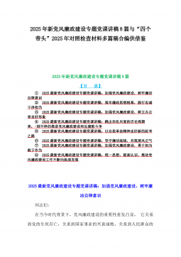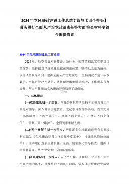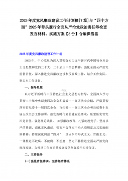 2025年度党风廉政建设工作计划稿[7篇]与“四个方面”2025年带头履行全面从严治党政治责任等检查发言材料、实施方案【8份】合编供借鉴