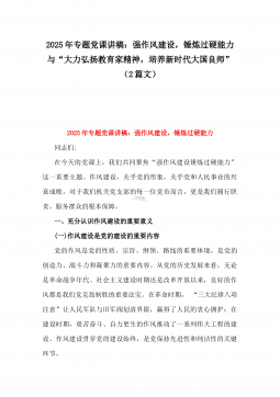 2025年专题党课讲稿:强作风建设,锤炼过硬能力(2篇文)供参考