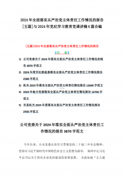 2024年学校党委党支部党建工作总结及2025年党建工作计划(5篇)与2024年党支部落实全面从严治党主体责任情况报告【6篇】供参考