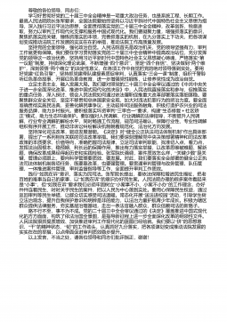 同志们: 习近平总书记在主持二十届中共中央政治局第十七次集体学习强调,要锚定2035年建成文化强国的战略目标,坚持马克思主义这一根本指导思想,植根博大精深的中华文明,顺应信息技术发展潮流,不断发展具有强大思想引领力、精神凝聚力、价值感召力、国际影响力的新时代中国特色社会主义文化,不断增强人民精神力量,筑牢强国建设、民族复兴的文化根基。刚才,我们对讲话内容进行了全文传达,通过学习,为我们进一步明确了文化强国建设中所需的各项重点工作,为未来的文化实践提供了战略方向,要深刻认识到,在日常工作中贯彻党的文化发展理念,以人民为中心,增强文化服务供给能力,以适应人民群众日益增长的精神文化需求,助力社...