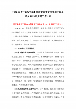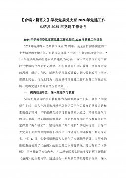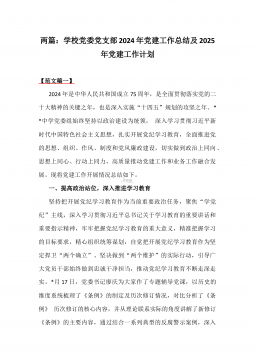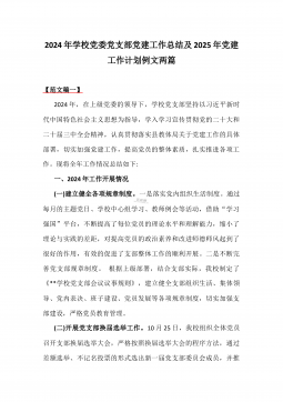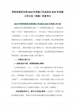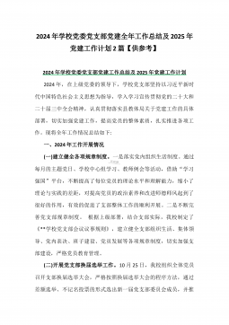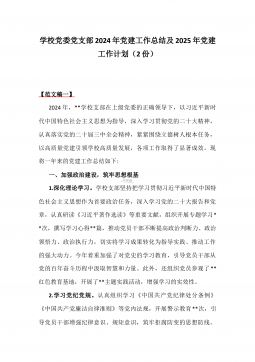 2024年学校党委党支部党建全年工作总结及2025年党建工作计划2篇【供参考】