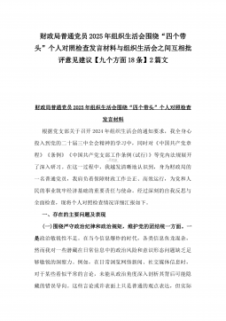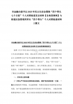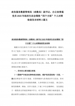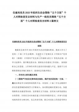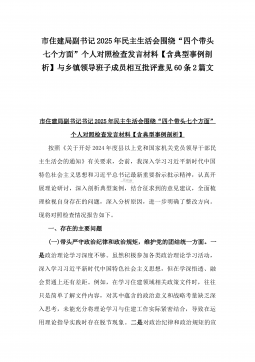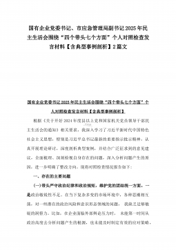 国有企业普通党员2025年围绕“四个方面”组织生活会个人对照检查发言材料与市住建局副书记“七个方面”个人对照检查发言材料【含典型事例剖析】2篇例文