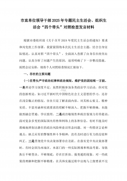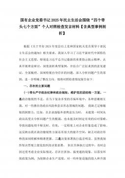 领导干部2025年民主生活会“四个带头”个人对照查摆剖析材料(含典型案例剖析)与国有企业党委书记民主生活会四个方面自我批评意见40条