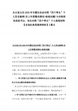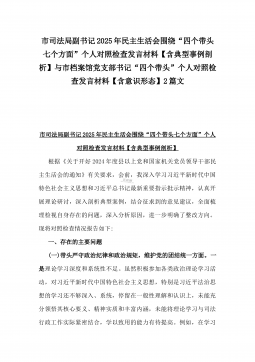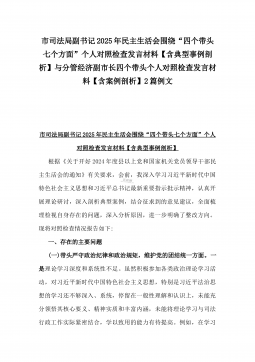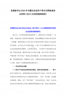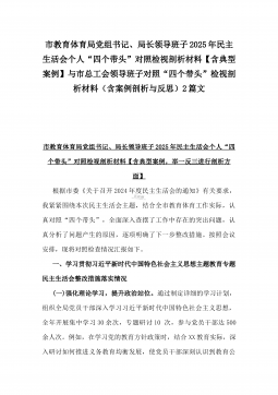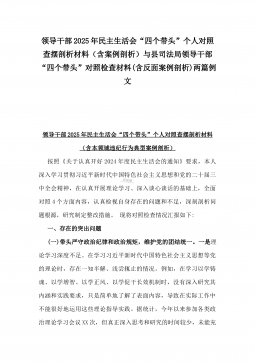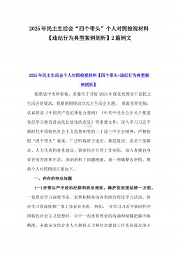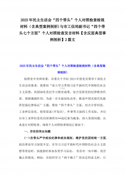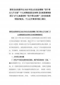 国有企业党委书记2025年民主生活会围绕“四个带头七个方面”个人对照检查发言材料【含典型事例剖析】与个人检查材料“四个带头对照”(含对其他领导批评意见,个人公开事项申报)2篇文国有企业党委书记2025年民主生活会围绕“四个带头七个方面”个人对照检查发言材料【含典型事例剖析】根据《关于开好2024年度县以上党和国家机关党员领导干部民主生活会的通知》相关要求,我深入学习了习近平新时代中国特色社会主义思想,特别是习近平总书记最新的重要指示批示精神,认真开展理论研讨,深度剖析典型案例,并结合广泛征求到的意见建议,全面梳理、深刻检视自身存在的问题,深入分析问题产生的原因,进一步明确了整改方向。现将对照检...