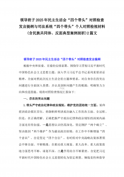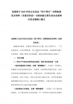 党委副书记2025年民主生活会“四个带头”个人对照检视发言材料(含反面典型案例剖析)与市投资促进局党支部书记“四个带头”个人对照检查发言材料【含意识形态】2篇文党委副书记2025年民主生活会“四个带头”个人对照检视发言材料(含反面典型案例剖析)2024年,在学校党委的坚强领导下,我校各项工作取得了一定成绩,但通过深入反思和自我检视,我也清醒地认识到自身存在的一些问题。按照市委关于开好2024年度党员领导干部民主生活会的有关要求,本人深入学习领会党的二十届三中全会精神和习近平总书记系列重要讲话精神,认真研读党章、《中国共产党纪律处分条例》等党内法规,聚焦本次民主生活会主题,结合分管工作实际,严格...