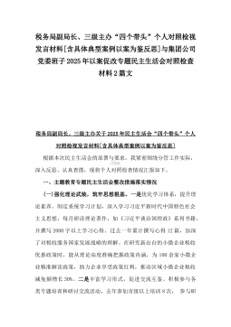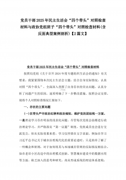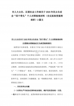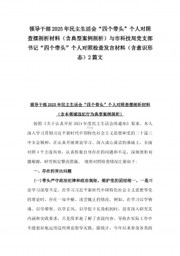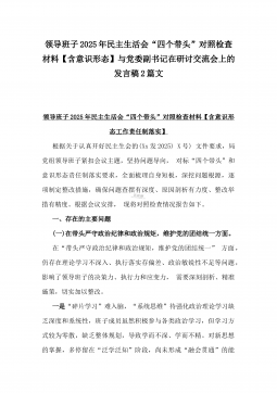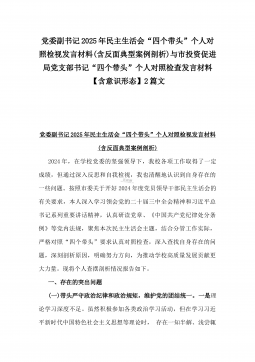 党委副书记2025年民主生活会“四个带头”个人对照检视发言材料(含反面典型案例剖析)与市投资促进局党支部书记“四个带头”个人对照检查发言材料【含意识形态】2篇文