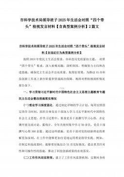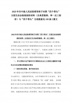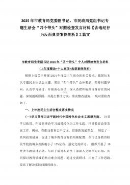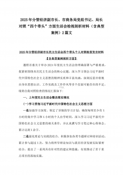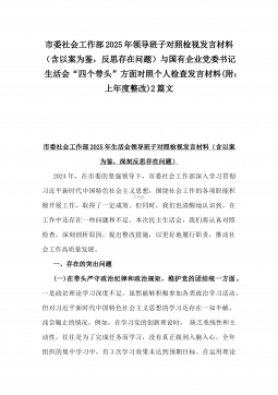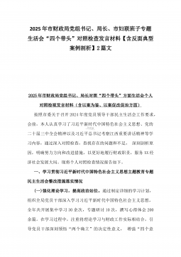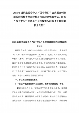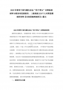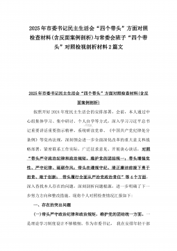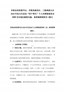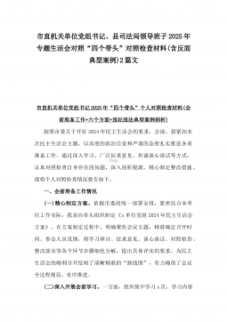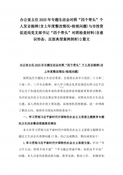 办公室主任2025年专题生活会对照“四个带头”个人发言提纲(含上年度整改情况+检视问题)与市投资促进局党支部书记“四个带头”对照检查材料(含意识形态、反面典型案例剖析)2篇文办公室主任2025年专题生活会对照“四个带头”个人发言提纲(含上年度整改情况+检视问题)按照这次专题民主生活会要求,会前我认真学习党的二十大和二十届二中、三中全会精神,深入学习领会党章党规党纪和习近平总书记关于加强党的自我革命的重要论述和系列最新重要讲话精神,为开好这次民主生活会奠定坚实的思想基础。对照本次民主生活会主题,深入查找存在的主要问题,深刻剖析思想根源,进一步明确了整改方向。现将有关情况对照检查如下:一、学习贯彻...