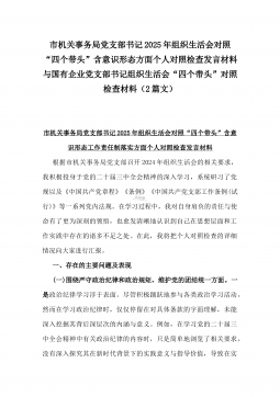 办公室主任2025年专题生活会对照“四个带头”个人发言提纲(含上年度整改情况+检视问题)与市投资促进局党支部书记“四个带头”对照检查材料(含意识形态、反面典型案例剖析)2篇文
