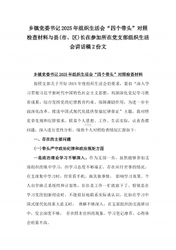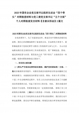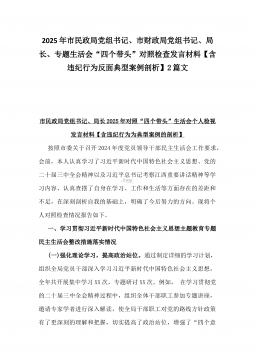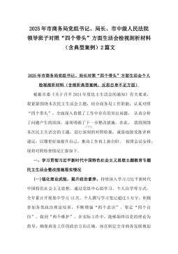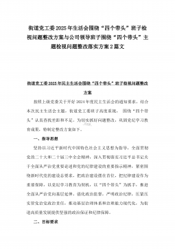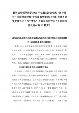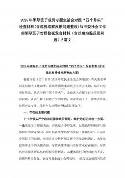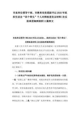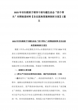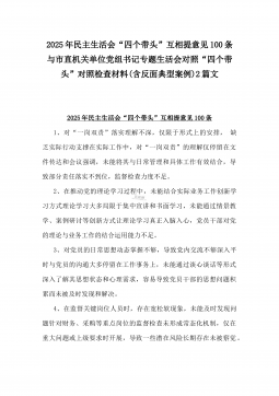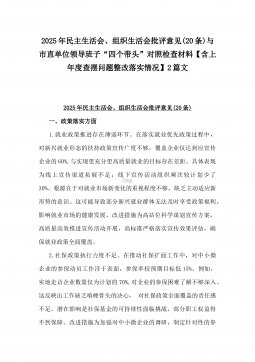 2025年民主生活会、组织生活会批评意见(20条)与市直单位领导班子“四个带头”对照检查材料【含上年度查摆问题整改落实情况】2篇文