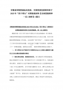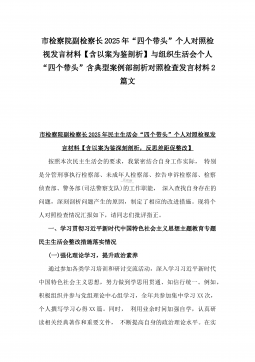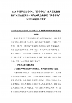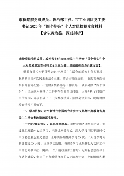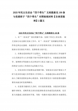 2025年“四个带头”整改落实情况、意识形态工作、反面典型案例查摆对照发言材料与市教育体育局党组书记、局长领导班子“四个带头”对照检视剖析材料【含典型案例】2篇文2025年“四个带头”民主生活会个整改落实情况、意识形态工作、反面典型案例查摆人对照发言材料一、对照4个重点方面存在的主要问题(一)带头严守正治纪聿和正治规矩,维护团结方面存在的问题(二)带头严守纪聿、砥砺作风方面存在的问题(三)带头在遵规守纪、清正廉洁前提下勇于担责、敢于创新方面存在的问题(四)带头履行全面从严治存在的问题(五)整改落实情况方面存在的问题(六)意识形态工作方面存在的问题二、对照反面典型案例查摆的问题三、产生问题的原因...