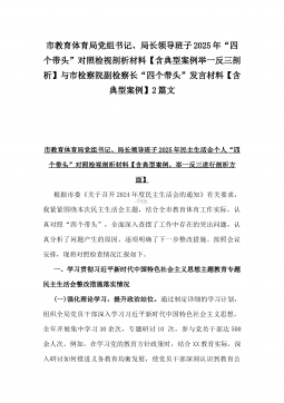 2025年“四个带头”整改落实情况、意识形态工作、反面典型案例查摆对照发言材料与市教育体育局党组书记、局长领导班子“四个带头”对照检视剖析材料【含典型案例】2篇文
