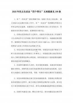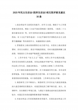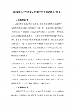 2025年民主生活会、组织生活会批评意见(20条)