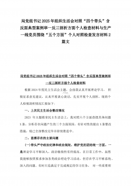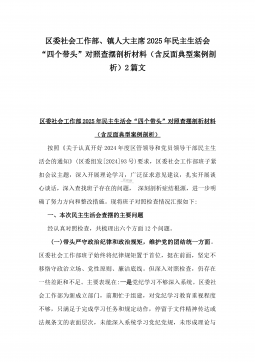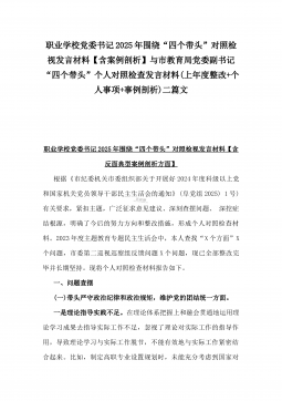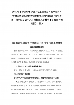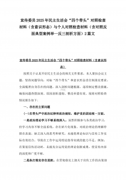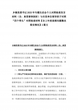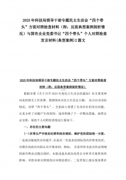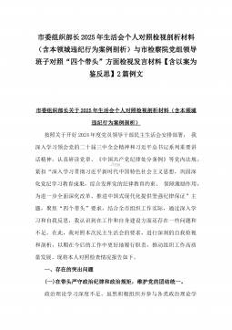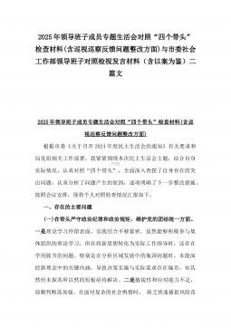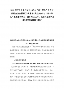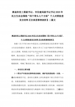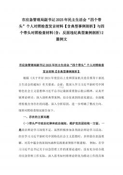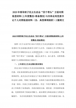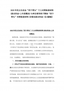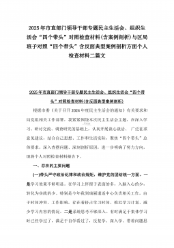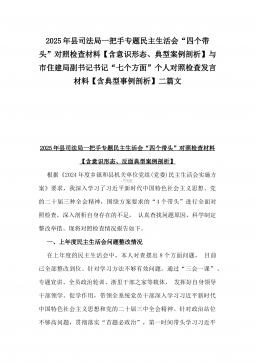 2025年县司法局一把手专题民主生活会“四个带头”对照检查材料【含意识形态、典型案例剖析】与市住建局副书记书记“七个方面”个人对照检查发言材料【含典型事例剖析】二篇文